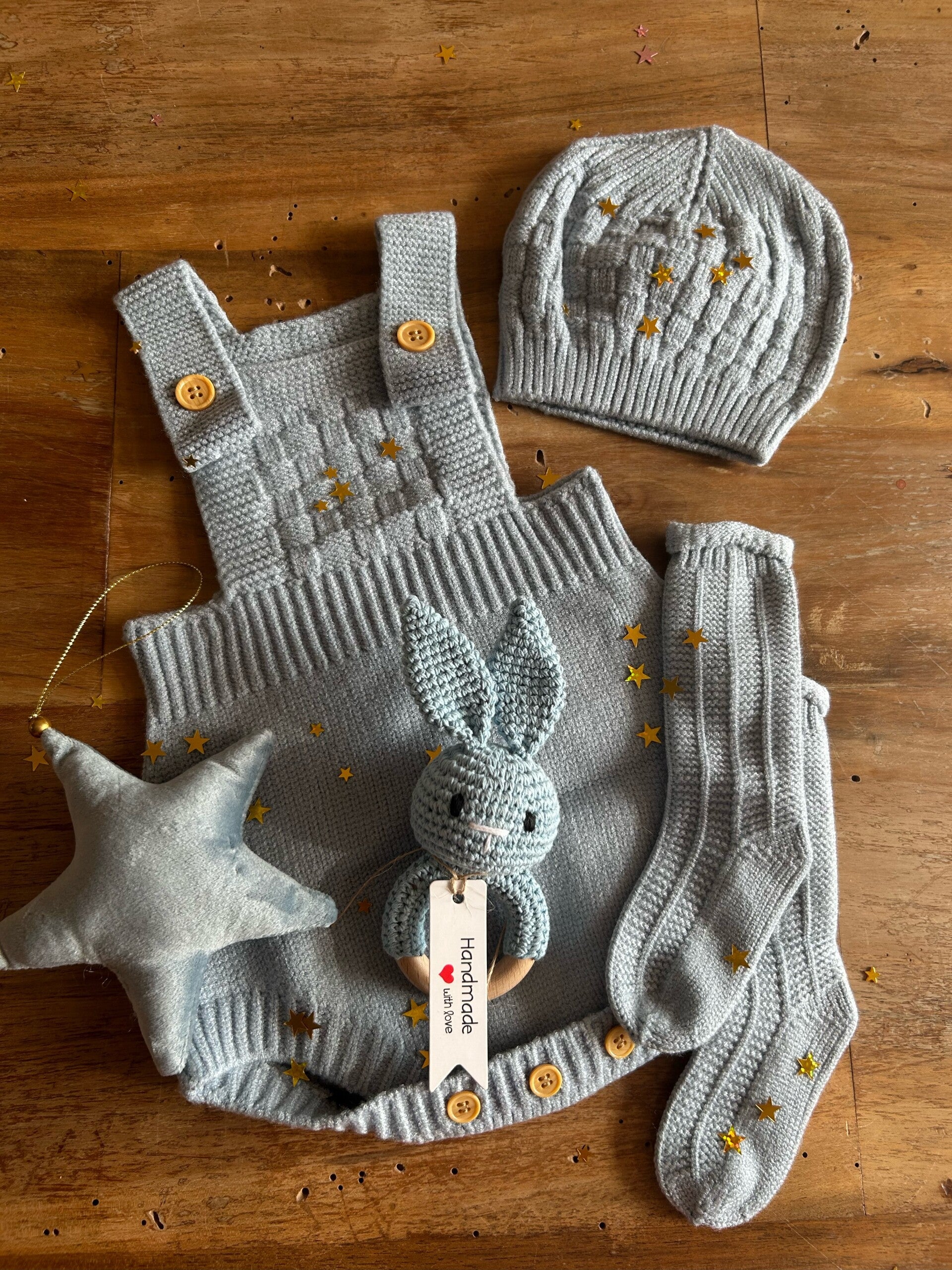 - Completo composto da: salopette + calzini + cappellino. E' possibile ricamere sulla salopette l'iniziale