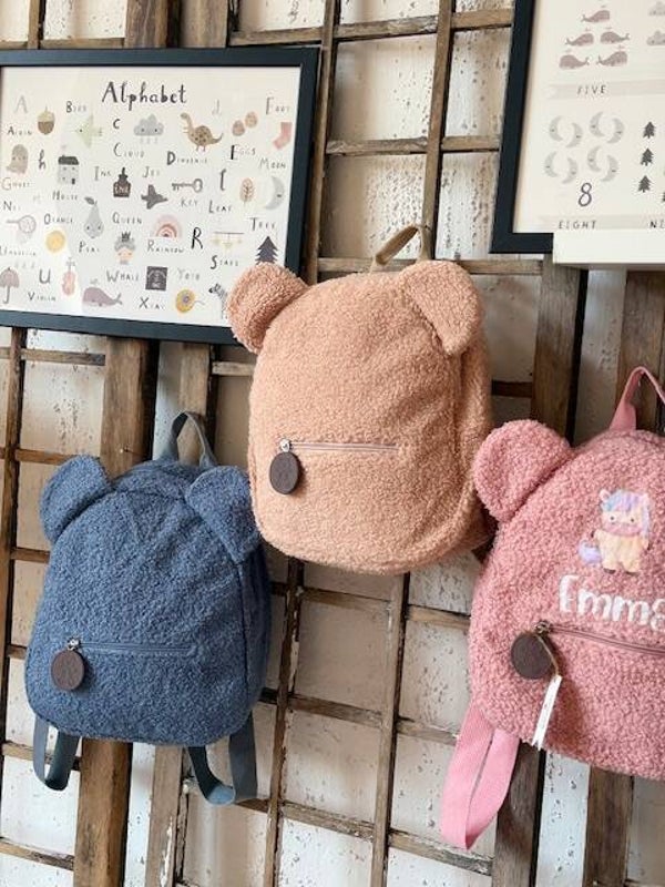 zainetto morbido in tessuto teddy personalizzabile con nome e/o immagine (potete anche inviarci voi l'immagine desiderata, se idonea la inseriremo senza problemi).